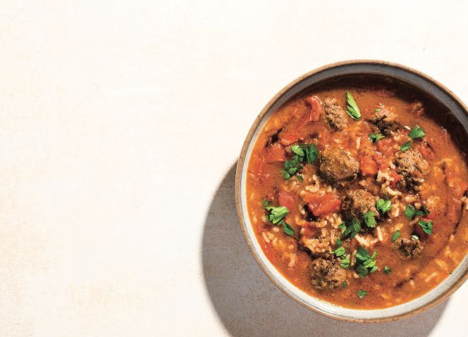 40 Minute Comfort Meal: Syrian-Style Meatball Soup with Rice and Tomatoes